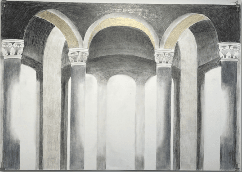 Teckning och textil. Lill Sjöström.