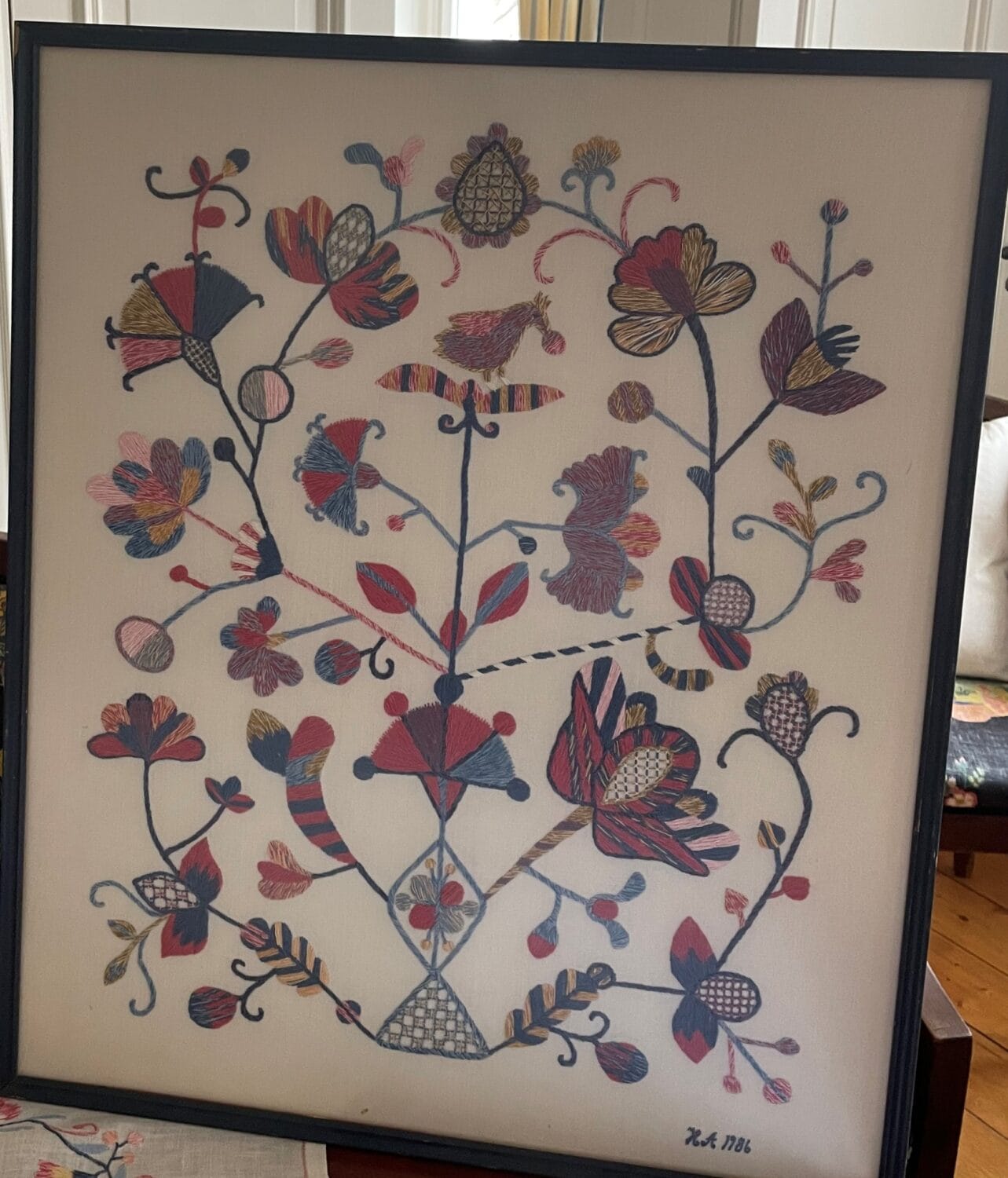 Dukarna, tavlan, vepan samt gästhanddukarna har sytts av min mor Hulda Andersson.